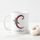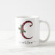 Black and Red Buffalo Plaid C Monogram Xmas Coffee Mug featuring a cute A initial letter with a buffalo plaid pattern and mistletoe watercolor element. The custom name template under the C monogram is in a swirly handwritten calligraphy font with flourishes. Give a thoughtful personalised Christmas mug as a winter holiday gift or stocking stuffer. For a different monogram letter check out the "Other products from this collection" section below.
