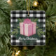 Buffalo Plaid Christmas Gift | Pink Holiday Ceramic Ornament
