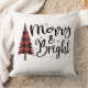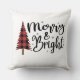 Stylish typography Merry and Bright brush script saying with a buffalo plaid tree in red and black. You will love this trendy and rustic themed pillow. See our matching products as well!