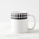 This ceramic coffee mug is shown with a lovely black and white color buffalo plaid.