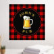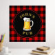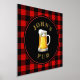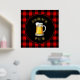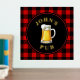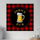 Decorate your bar or man cave with a custom bar sign in red and black buffalo plaid with real gold foil text spelling out your name. This square sign has a glass beer mug filled with beer in the centre of the design. It makes a wonderful gift or personal decor item for your home and may be personalised with any name.
