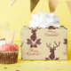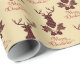 A red and black buffalo print deer head combines with a matching acorn and leaves to form an attractive pattern on this Holiday wrapping paper. Separating the repeated images is matching red script that says "Merry Christmas". The pattern is placed on a light gold background to form a unique and rustic looking Christmas paper. Be sure to see the matching products in our store.