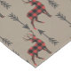 A red and black buffalo plaid silhouette buck deer with antlers is paired with alternating black arrows and forms a pattern across the front of this unique table cloth. The pattern is placed on a neutral tan background. Be sure to see the matching home decor products in our store.