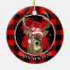 Buffalo Plaid Deer Santa Hat Ceramic Tree Decoration