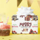 The repeated pattern on this cute Christmas wrapping paper is an image of an adorable German Shepherd puppy wearing a red and white Santa Claus hat. There is a black and red buffalo plaid pillow behind him, and a coordinating gift package with a gold ribbon beside him. There's also a buffalo plaid bow and the matching text that says "JOY". Stylised red and black buffalo plaid text says MERRY CHRISTMAS", and your own signature is in two fields for you to customise.