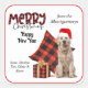 This Holiday sticker features a pretty Golden Retriever dog wearing a red and white Santa hat. Beside the dog is a red and black buffalo plaid pillow and a matching gift package. Buffalo plaid typography pairs with black script to say "MERRY Christmas", with "Happy New Year" below that. Your custom signature is in two easy to change text fields. Perfect for your Holiday correspondence.