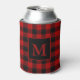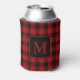 Rustic masculine can cooler, done in the classic red and black buffalo plaid pattern.  Personalise the bold red one letter monogram, to suit your needs.  Great gift idea.