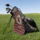 The background on this personalised golf towel is a red and black buffalo plaid pattern. At the centre is a tan circle banner with a matching red and black plaid silhouette moose head. Below is a small matching banner with your three letter monogram. Be sure to see the matching golf items in our store.