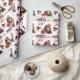 The repeated pattern on this cute Christmas wrapping paper is an image of a brown and white Pit Bull Dog wearing a red and white Santa hat, with a black and red buffalo plaid pillow behind him, and a coordinating gift package with a gold ribbon beside him. There's also a buffalo plaid bow and the matching text that says "JOY". Stylised red and black buffalo plaid text says MERRY CHRISTMAS", and your own signature is in two fields for you to customise.