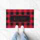 Buffalo Plaid Red and Black Custom Name Doormat