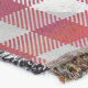 A quality printed throw has its advantages. This is a much finer weave throw than its loopier cousins, and though lighter, it is worth the investment for custom room accessorizing. The back is much prettier than the typical brown, and the fringe on the long sides very vivid, the selvage nicely done. Before photographing, I washed the throw in cold water, delicate, with a thicker woven throw the same size. On tumble dry low, this throw was dry in half the time as the other. This is a very practical quality if you use throws for furniture covers or to wrap up in frequently. The sleekness of the fabric makes it a great layer for accenting or protecting without the feeling of sitting on too much stuff. Perfect for napping or when you feel a light chill coming on. The color printing is beautiful and on this fabric, matched the design and color of my Photoshop image. This is an advantage for blending room fabrics and colors. The fringe on the short sides prints the colors from the design image and therefore varies from the side fringe. I streaked a white fractal line through the plaid pattern to give the illusion of weaving. This printed as crisp as an illusory thread, and put some white in the short side fringe, showing another advantage of print vs loomed- for artistic purposes, line lines, detail, and color integrity can be planned and preserved. My loomed throws have color limitations and more of a needlepoint texture. Print throws reproduce an exact image. The throw felt a little stiff straight out of the package, but this went away in the first delicate wash. Of course I searched the wash water for ink or bleeding and there was none.