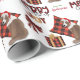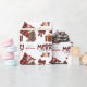 The repeated pattern on this cute Christmas wrapping paper is an image of a red and white Australian Shepherd Dog wearing a Santa hat, with a black and red buffalo plaid pillow behind him, and a coordinating gift package with a gold ribbon beside him. There's also a buffalo plaid bow and the matching text that says "JOY". Stylised red and black buffalo plaid text says MERRY CHRISTMAS", and your own signature is in two fields for you to customise.