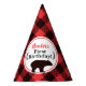 Buffalo Plaid Red Black Bear Birthday Party Hat