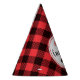 Sport these cute red and black buffalo check cone party hat at your kids lumberjack or "wild one" birthday party. Personalised with name and age.