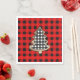 Red, black and white Buffalo plaid, gingham Christmas Trees paper napkins for your Christmas party.