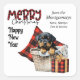 This Holiday sticker features an adorable Christmas Rottweiler puppy in a woven basket. Behind the dog is a red and black buffalo plaid pillow, and a matching gift package sits beside the basket. Buffalo plaid typography pairs with black script to say "MERRY Christmas", with "Happy New Year" below that. Your custom signature is in two easy to change text fields. Perfect for your Holiday correspondence.