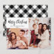 Modern Simple Black and White Buffalo Plaid Script 2 Photo Collage Christmas Cards. This festive minimalist multi photo christmas cards features pretty 2 grid photo collage, a „Merry Christmas” plaid greeting text which is written in a hand lettered brush script typography font type. At the backing black and white buffalo plaid or chequered pattern. This pretty elegant Custom Photo Christmas Cards are a great way to remind loved ones that you're thinking of them this Winter Holiday Season.