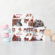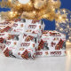 The repeated pattern on this cute Christmas wrapping paper is an image of a Scottish Terrier dog wearing a red and white Santa Claus hat. There is a black and red buffalo plaid pillow behind him, and a coordinating gift package with a gold ribbon beside him. There's also a buffalo plaid bow, a gold bell, and text that says "JOY". Stylised red and black buffalo plaid text says MERRY CHRISTMAS", and your own signature is in two fields for you to customise. Be sure to see the other Scottie images and products, as well as dozens of other dog breed products, at Dog Village.
