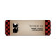Address labels featuring an illustration of a baby skunk over a cardstock inspired background with red and black buffalo plaid accents. Personalise the name and address.