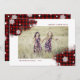 buffalo plaid red background in watercolor splash sprinkled with white snowflakes and your own photo in the centre and the personalised script in elegant serif font
