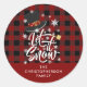Buffalo Plaid Snowflake Whimsical LET IT SNOW Classic Round Sticker