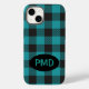 Buffalo Plaid Turquoise Teal Blue Black Monogram Case-Mate iPhone Case