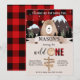 Flannel up for some fun, Wilderness Baby Bear theme, Buffalo Plaid Wild One Bear 1st Birthday Invitation.