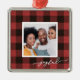 Red buffalo plaid joyful script photo Christmas Ornament.