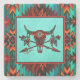 This is a Unique "One of a Kind" Southwest Buffalo Skull and Arrows Stone Coaster! It Features Native American Buffalo Skull and Arrows on a Turquoise Background...Surrounded by a Southwest Border in Turquoise, Orange & Black!