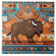 southwest native american buffalo,southwestern decorative pattern style,orange brown teal blue,turquoise black earthy hues,traditional folk art painting,south western america animals,southern outdoor wlidlife,usa plain tribal indian,nature wild natural clay,bison animal
