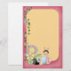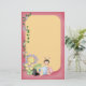 a soft yellow background surrounded by a pink frame, decorated with vines, butterflies and flowers and a cute folkart bug sitting on the bottom. Customise this whimsical stationery with a name and you have the perfect personalised gift for a little girl!