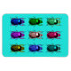 Bright, brilliant, beautiful array of 9 colourful scarab beetles on a sky-blue background. Customise It to select a different background colour and add text!