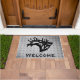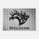 Personalise this Unique "One of a Kind" Bull Elk Door Mat! It Features a Majestic Bugling Bull Elk Black Silhouette...on a Decorative Silver Background!