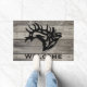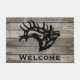 Personalise this Unique "One of a Kind" Bull Elk Door Mat! It Features a Majestic Bugling Bull Elk Black Silhouette...on a Grey Wood Background!
