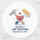 Celebrate your journey of love and sawdust! This charming and funny design features a happy heart character with a crossed hammer and paint roller, perfectly capturing the spirit of teamwork in a relationship. The quote, "Building A Life Together. One Project At A Time," is a sweet and humourous nod to couples who bond over home improvement, renovations, and DIY projects.