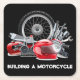 Building a Motorcycle with Parts Drawing Square Paper Coaster