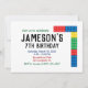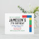 Building Block Birthday party invitation for a 7th birthday party! © 2022 Tea Olive Co.