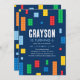 Invite friends and family to celebrate your little one's birthday with this building block birthday invitation.