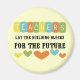 Multicolor text and hearts design reads "Teachers Lay The Building Blocks For The Future" on teacher inspirational T-shirts, mugs, bags, buttons, stickers, key chains, cards, and other items great for teachers, education professionals, or anyone who values teachers and education!