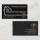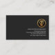 Overleaf, in a dark grey cover, details are on the right side of the card. At the top is the gold logo followed by your prestigious name, contact details and a slogan caption to publicise your services.
