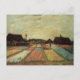 Bulb Fields by Vincent van Gogh is a vintage fine art post impressionism floral landscape nature painting. A farm field of blooming spring flowers with a farmer walking, the sky is filled with grey storm clouds. A farmhouse is in the distance.