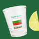 Shot glass with Bulgarian Flag with the word BULGARIA below in the white, green and red colours of the flag. There is a space to add a name for a special look or personalised gift. The flag of Bulgaria is three vertical stripes. One is white, the second is green, and the last is red. Great housewarming gift for the home bar or stocking stuffer.