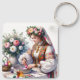 Bulgarian Easter Watercolor Woman Flowers Eggs Key Ring