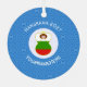 An angel dressed in the flag of Bulgaria on a metal ornament with a Hanukkah theme. The Bulgarian angel flies in a white circle of squiggly squares. The background is blue squiggly squares. Designed for Hanukkah decor for families of multiple religions. Add a name to personalize. Add the year to customize. You can, also, add your own text as you please.