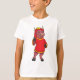 The t-shirt feels and looks great quality, a good thick cotton. It will be a little big for my son, but that means he will be able to wear it and not out grow it too soon. The print was as described on the order when personalised. True size, shape and colour T-shirt- thanks.