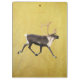 A bull caribou, or reindeer, superimposed on a brain-tanned leather background. The caribou (Rangifer tarandus), known as the reindeer outside of North America, is a deer of the Arctic and Subarctic. While overall widespread and numerous, some subspecies are rare and one has gone extinct. The Inuit word tuktu means - deer that never stops moving. Caribou are always on the move, going north to calve, heading for the winter grounds, and south in the summer. Caribou considerably in colour and size. Uniquely among deer, both genders grow antlers, though these are larger in the males and there are a few populations where females lack them completely. Caribou hunting and herding of semi-domesticated reindeer (for meat, hides, antlers, milk and transportation) are important to several Arctic and Subarctic people. Even far outside its range, the caribou/reindeer is well known due to the myth, probably originating in early 19th century America, in which Santa Claus's sleigh is pulled by flying reindeer, a popular secular element of Christmas. In actual Lapland, reindeer would pull a pulk. Distribution and habitat The caribou/reindeer is a widespread and numerous species in the northern Holarctic, being present in both tundra and taiga (boreal forest). It was originally was found in Scandinavia, eastern Europe, Russia, Mongolia, and northern China north of the 50th latitude. In North America, it was found in Canada, Alaska (USA), and the northern conterminous USA from Washington to Maine. In the 19th century, it was apparently still present in southern Idaho. It also occurred naturally on Sakhalin, Greenland, and probably even in historical times in Ireland. During the late Pleistocene era, reindeer were found as far south as Nevada and Tennessee in North America and Spain in Europe.Today, then species has disappeared from many areas within this large historical range, especially from the southern parts, where it vanished almost everywhere. Large populations are still found in Norway, the Markku region of Finland, Sweden, Siberia, Greenland, Alaska, and Canada. Domesticated reindeer are mostly found in northern Fennoscandia and Russia, with a herd of approximately 150-170 reindeer living around the Cairngorms region in Scotland. The last remaining wild tundra reindeer in Europe are found in portions of southern Norway. A few reindeer from Norway were introduced to the South Atlantic island of South Georgia in the beginning of the 20th century. Today, there are two distinct herds still thriving there, permanently separated by glaciers. Their total numbers are no more than a few thousand. The flag and the coat of arms of the territory contain an image of a reindeer. Around 4000 reindeer have been introduced into the French sub-Antarctic archipelago of Kerguelen Islands. East Iceland has a small herd of about 2500–3000 animals. Caribou and reindeer numbers have fluctuated historically, but many herds are in decline across their range. This global decline is linked to climate change for northern, migratory caribou and reindeer herds and industrial disturbance of caribou habitat for sedentary, non-migratory herds. Fur Fur colour varies considerably, both individually, and depending on season and subspecies. Northern populations, which usually are relatively small, are whiter, while southern populations, which typically are relatively large, are darker. This can be seen well in North America, where the northermost subspecies, the Peary Caribou, is the whitest and smallest subspecies of the continent, while the southermost subspecies, the Woodland Caribou, is the darkest and largest. The coat has two layers of fur, a dense woolly undercoat and longer-haired overcoat consisting of hollow, air-filled hairs. Antlers Reindeer antlers grow again each year under a layer of fur called velvet. In most populations both sexes grow antlers, which (in the Scandinavian variety) for old males fall off in December, for young males in the early spring, and for females in the summer. The antlers typically have two separate groups of points, a lower and upper. Domesticated reindeer are shorter-legged and heavier than their wild counterparts. There is considerable subspecific variation in the size of the antlers (e.g., rather small and spindly in the northernmost subspecies), but in some subspecies the bull reindeer's antlers are the second largest of any extant deer, after the moose, and can range up to 39 inches (100 cm) in width and 53 inches (135 cm) in beam length. They have the largest antlers relative to body size among deer.Antler size plays a significant role in establishing group hierarchy. Nose and hooves Reindeer have specialised noses featuring nasal turbinate bones that dramatically increase the surface area within the nostrils. Incoming cold air is warmed by the animal's body heat before entering the lungs, and water is condensed from the expired air and captured before the deer's breath is exhaled, used to moisten dry incoming air and possibly absorbed into the blood through the mucous membranes. Reindeer hooves adapt to the season: in the summer, when the tundra is soft and wet, the footpads become sponge-like and provide extra traction. In the winter, the pads shrink and tighten, exposing the rim of the hoof, which cuts into the ice and crusted snow to keep it from slipping. This also enables them to dig down (an activity known as "cratering") through the snow to their favourite food, a lichen known as reindeer moss. The knees of many species of reindeer are adapted to produce a clicking sound as they walk. Diet Reindeer are ruminants, having a four-chambered stomach. They rely primarily on lichens in winter, especially reindeer moss. However, they also eat the leaves of willows and birches, as well as sedges and grasses. There is some evidence to suggest that on occasion, they will also feed on lemmings, arctic char, and bird eggs. Reindeer herded by the Chukchis have been known to devour mushrooms ent