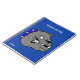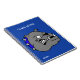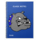 A cartoon head of a grey bull dog decorates the front of this blue spiral notebook, with white custom text ready to personalise. Great for school, home or office.