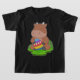 The t-shirt feels and looks great quality, a good thick cotton. It will be a little big for my son, but that means he will be able to wear it and not out grow it too soon. The print was as described on the order when personalised. True size, shape and colour T-shirt- thanks.