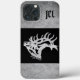 Personalise Your Cell Phone with this "One of a Kind" Bull Elk iPhone Case. It Features a Silver Bugling Bull Elk Silhouette on Black Background...with Silver Leather Borders!