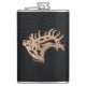 This Unique "One of a Kind" Bull Elk Flask! It Features a Copper Bugling Bull Elk Silhouette on a Black Leather Background!